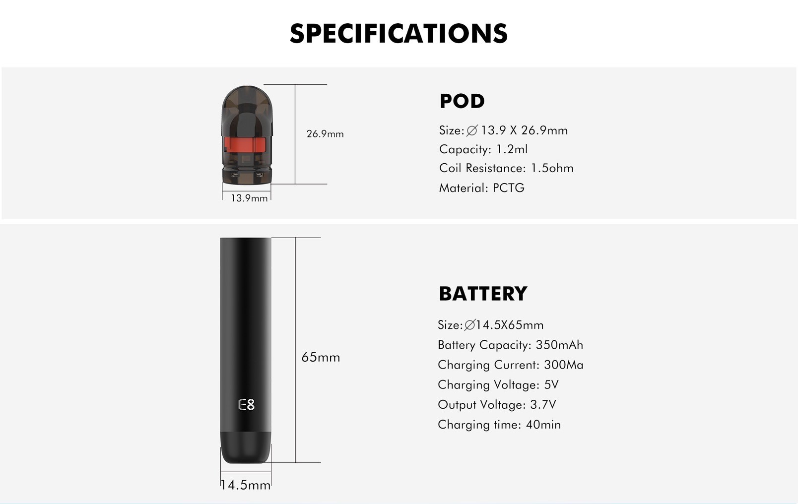 E8擁有3.7V的輸出,彌補了它的味道還原度和煙霧量。